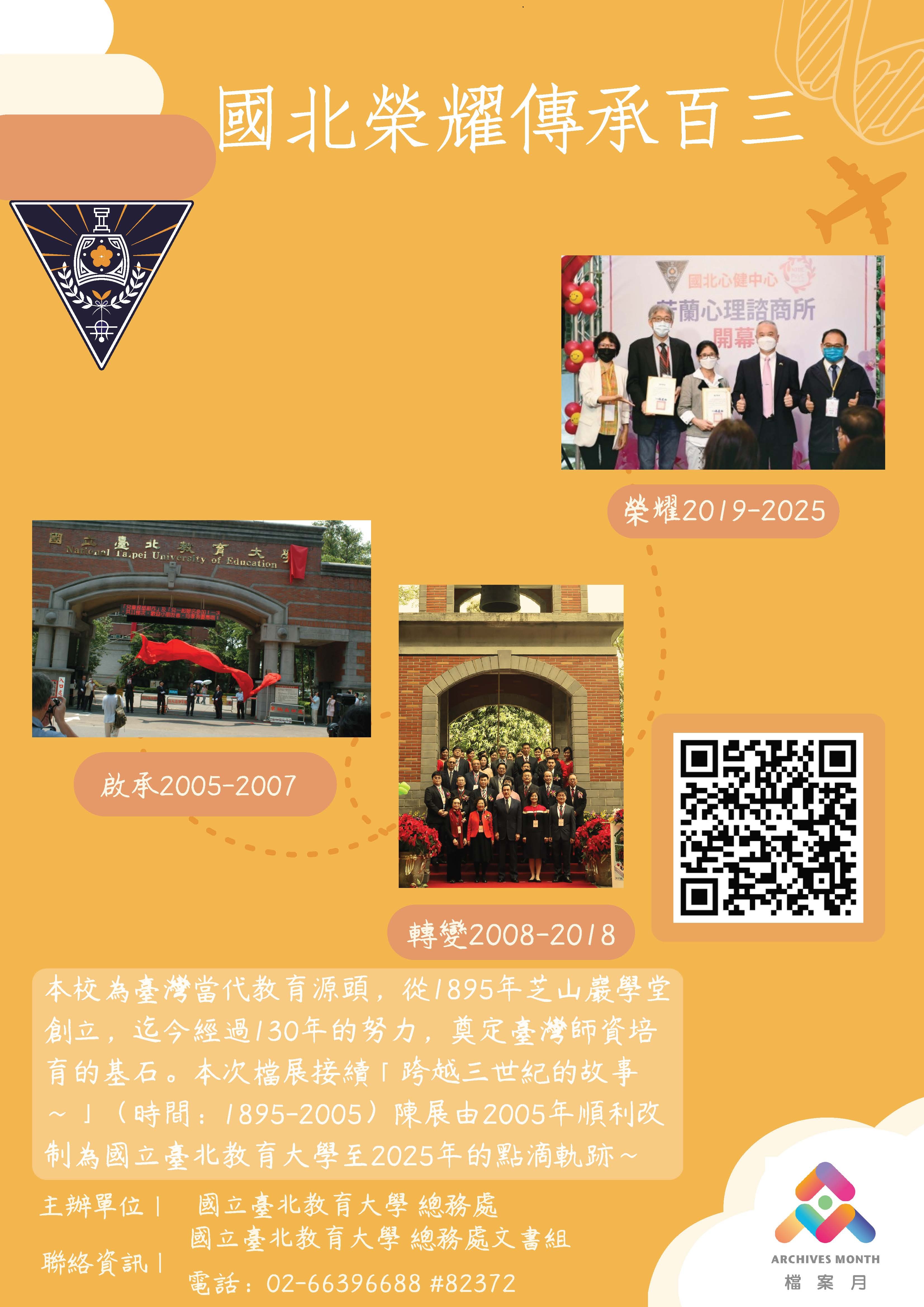 臺北教育大學為慶祝本校130週年校慶,舉辦「國北榮耀傳承百三」線上檔案展,敬請點閱瀏覽。